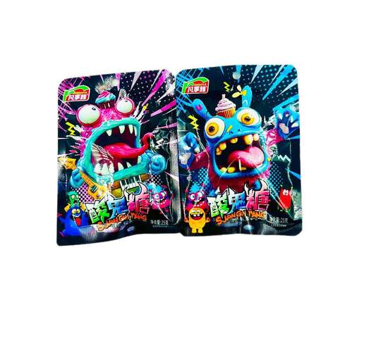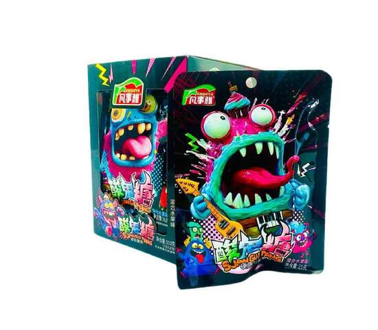 Состав: Белый сахар, мальтозный сироп, пищевая соль, пищевые добавки (лимонная кислота, DL-яблочная кислота, тартразин, бриллиантовый голубой, очаровательный красный), пищевой ароматизатор.