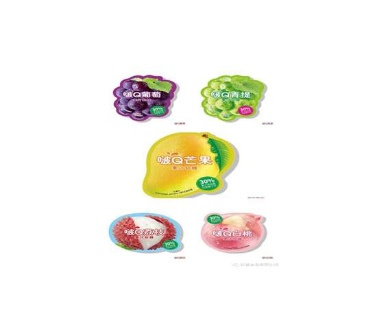 Состав: Мальтозная патока, белый сахар, вода, концентрированный яблочный сок≥30%, пищевые добавки (сорбит, каррагинан, пектин, лимонная кислота, DL-яблочная кислота, цитрат натрия, карнаубский воск, диоксид титана), пищевой ароматизатор( манго, виноград, личи, персик).