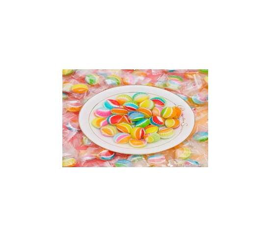 Состав: белый сахар, глюкозный сироп, пищевые добавки (лимонная кислота, DL-яблочная кислота, тартразин (Е102), солнечный жёлтый (Е110), кармин (Е120), бриллиантовый синий FCF (Е133), диоксид титана (Е171)), пищевой ароматизатор "Фруктовый".
