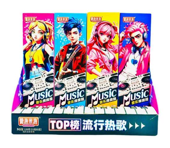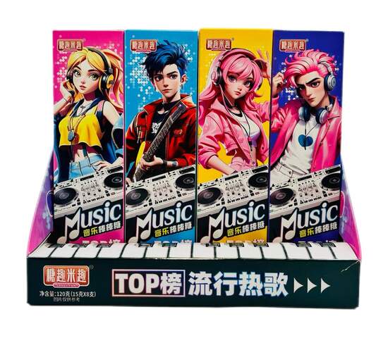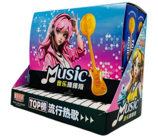 Леденцовая карамель с игрушкой "Музыкальная гитара" CANDY FUN со вкусом клубники и персика, бокс 120г (15г*8 упак)