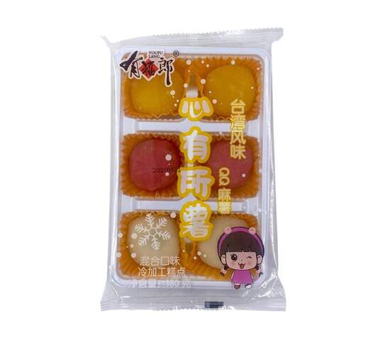 Состав: Мальтозный сироп, клейкая рисовая мука, шортенинг, начинка со вкусом клубники (мальтозный сироп, белый сахар, клубника, пищевое растительное масло Шишу, моно- и диглицериловые эфиры жирных кислот, амарин, сорбиновая кислота (глицерин, вода питьевая, кошениль, красный дрожжевой рис).