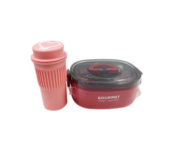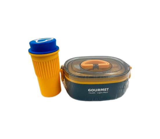 Ланч бокс в наборе со стаканом, ложкой, вилкой 24,5*14*9 см 1 л микс цветов