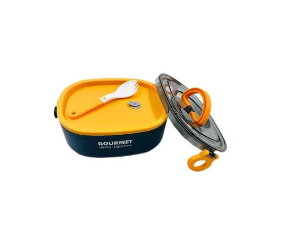 Ланч бокс выполнен из 100% пищевого полимера, не имеет посторонних запахов. Контейнер ланч бокс разделен на два отсека, что позволяет не смешивать еду и хранить продукты друг от друга. Данный контейнере для еды имеет усиленные защелки, вы можете быть спокойны, что он не откроется. Плюс этого ланч бокса, что его можно использовать в микроволновой печи и мыть в посудомоечной машине. В комплект входит вилка и ложка, столовые в приборы размещены в верхней части под крышкой.