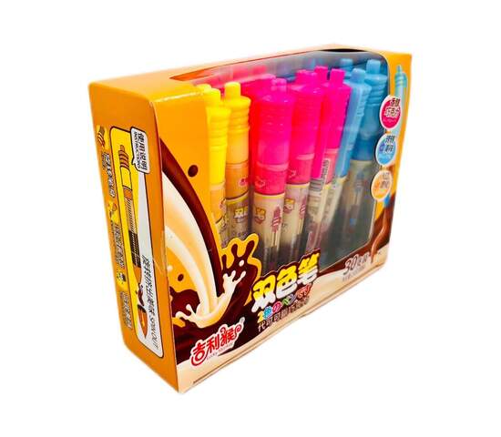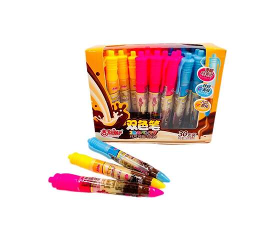 Разноцветные ручки с шоколадной пастой внутри. Крутишь ручку и паста вытекает. И вкусно, и весело