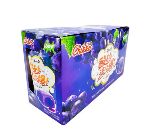 Состав: мальтозный сироп, белый сахар, трегалоза, пищевые добавки (сорбит жидкий, желатин, каррагинан, пектин, сорбиновая кислота, сорбат натрия, DL-яблочная кислота, агар, сорбиновая кислота, диоксид алмаза, сорбиново-желтый, ярко-синий, белое масло, бразильский коричневый тунговый воск), джем из винограда, концентрированный яблочный сок, пищевой ароматизатор. Количество добавленного джема из виград: 5,0%