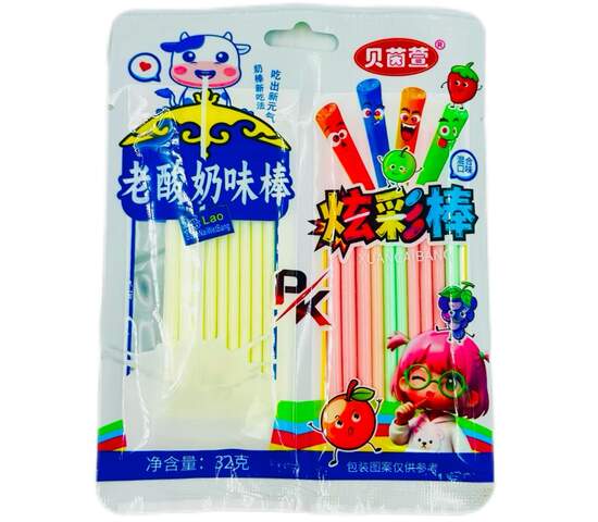 Необычный формат сладостей «два в одном». В каждом наборе вы найдете белые палочки с нежным вкусом классического йогурта и яркие разноцветные палочки с миксом фруктовых вкусов.