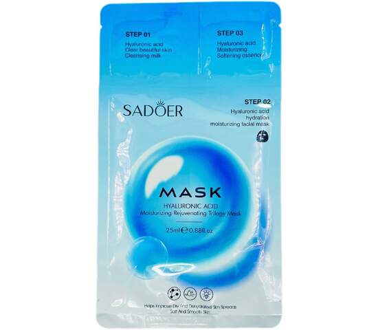 Маска для лица тканевая SADOER трёхэтапная с гиалуроновой кислотой, 25г