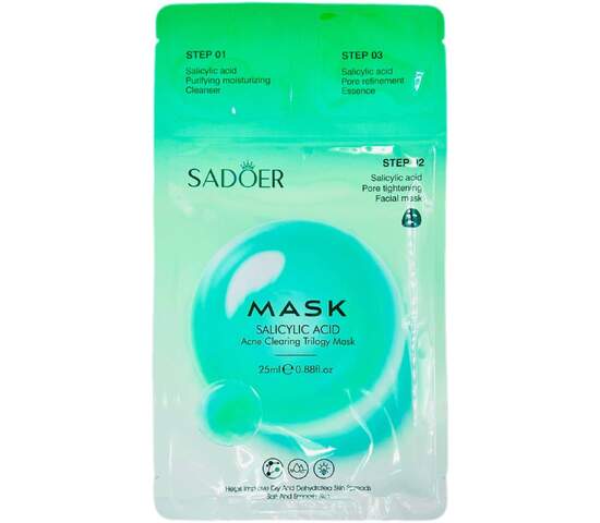 Маска для лица тканевая SADOER трёхэтапная с салициловой кислотой, 25г