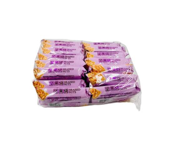 Состав: пшеничная мука, белый сахар, растительное масло, крахмал, хлопья грецкого ореха (с добавлением >5%), пищевые энергетические добавки (бикарбонат натрия, двууглерод натрия, ванилин, пищевой ароматизатор, метабисульфит натрия), пищевая соль
