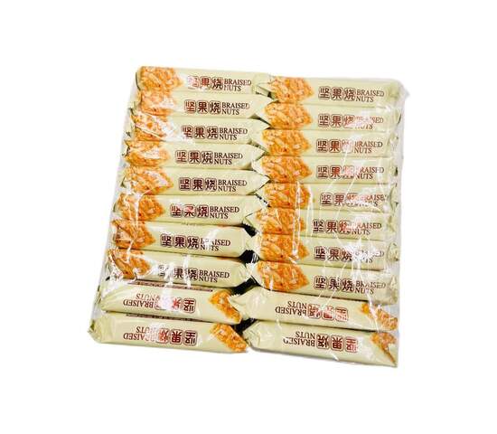 Состав: пшеничная мука, белый сахар, растительное масло, крахмал, арахисовые хлопья (с добавлением >5%), пищевые энергетические добавки (бикарбонат натрия, двууглерод натрия, ванилин, пищевой ароматизатор, метабисульфит натрия), пищевая соль