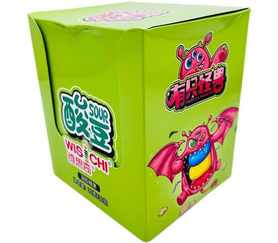 Кислые мармеладные бобы WISICHI, ассорти фруктовых вкусов, бокс 600г. (20г.*30шт.)