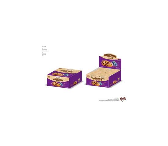 Состав: рисовый пирог "Сюэмэйнян" (мальтозный сироп, трегалоза, вода, кокосово-молочный ароматизированный сироп, рисовая мука, растительное пальмовое масло, кондитерский жир) (39%), специальная пшеничная мука (пшеница, кукурузный крахмал, глютен, витамин C, стеароиллактилат кальция), сливочное масло (5%), шоколадные капли на основе заменителя какао-масла (5%), сахар, свежие яйца, пищевые добавки (гидроксипропилдикрахмалфосфат, глицерин (E422), сорбит (E420), моно- и диглицериды жирных кислот (E471), полиглицерин-эфиры жирных кислот (E475), эфиры сахарозы и жирных кислот (E473), сорбиновая кислота (E200), глюконо-дельта-лактон (E575), комплексный краситель (свекольный красный, E162), каррагинан (E407), ксантан (E415), полиакрилат натрия (E466)), глюкозно-фруктозный сироп, сухое цельное молоко, соль, ароматизаторы "Голубика".