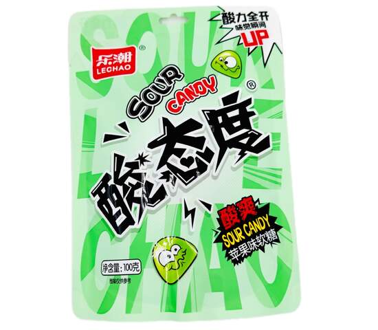 Жевательный мармелад LECHAO с кислым вкусом яблока, 100 г.