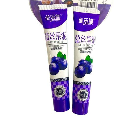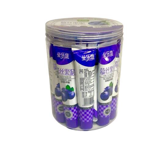 Очень вкусный фруктовый джем, со вкусом голубики. В меру сладкий