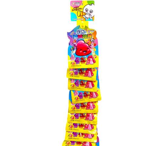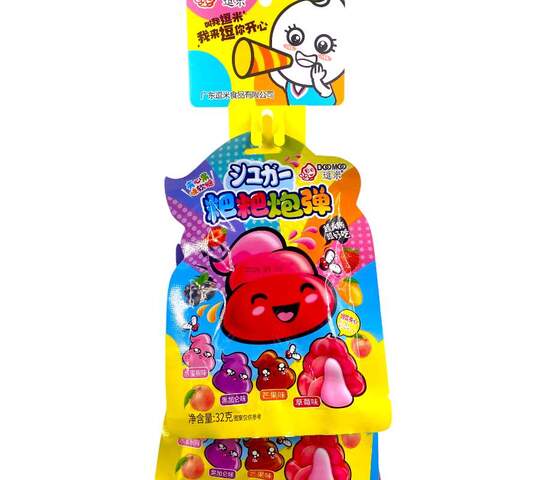 Состав: сироп глюкозы, сахар белый, вода питьевая, пищевые добавки (мальтит, каррагинан, пектин, гидроксипропилдикрахмалфосфат, цитрат натрия, DL-яблочная кислота, лимонная кислота, хлорид калия, ксантановая камедь), масло для глазировки (растительное масло, карнаубский воск). , витамин Е, лимонная кислота), пищевой ароматизатор, пищевой краситель [аллура красный, лимонно-желтый, бриллиантовый синий, диоксид титана, карамельный краситель