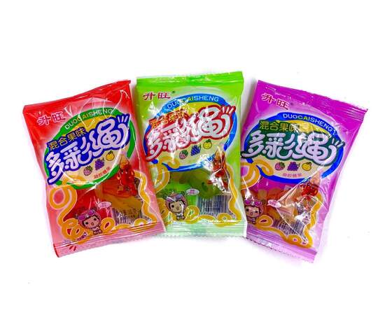 Фигурные разноцветные мармеладки в форме длинных змеек с ягодно-фруктовым вкусом. Мягкие, тягучие, очень ароматные.