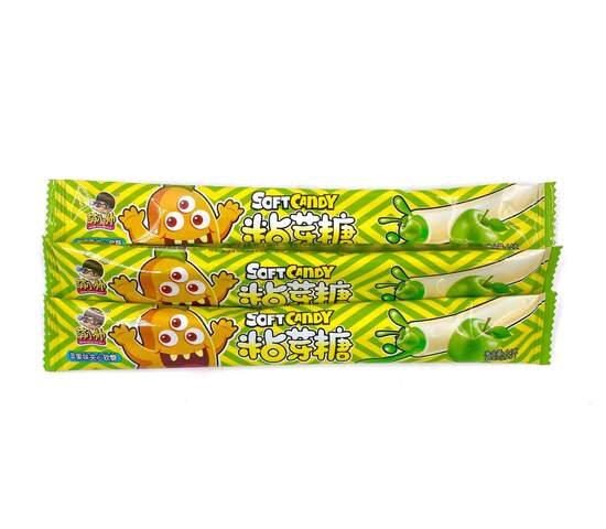 Тянучка , удлиненная жевательная вкусная конфета. С мармеладом внутри , со вкусом яблока