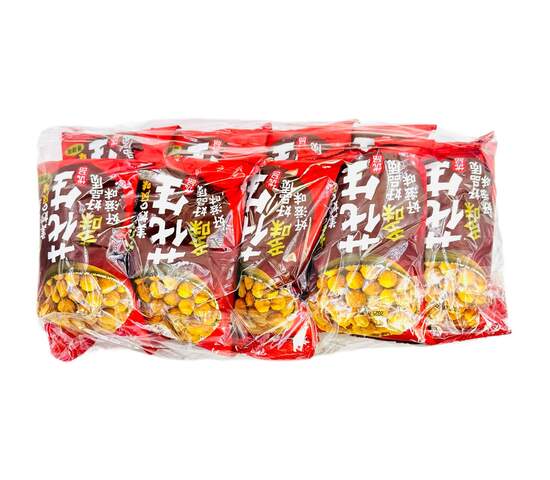 Состав: пшеничная мука, арахис, растительное пальмовое масло пищевое, сахар белый, мальтоза, кукурузный крахмал, специи (бадьян, корица, перец чили, чесночный порошок, фенхель, зира, сычуаньский перец), соль пищевая, дрожжевой экстракт; пищевые добавки: глутамат натрия, гидрокарбонат натрия, красный рисовый краситель (монококкус), пищевой ароматизатор "Пряные специи".
